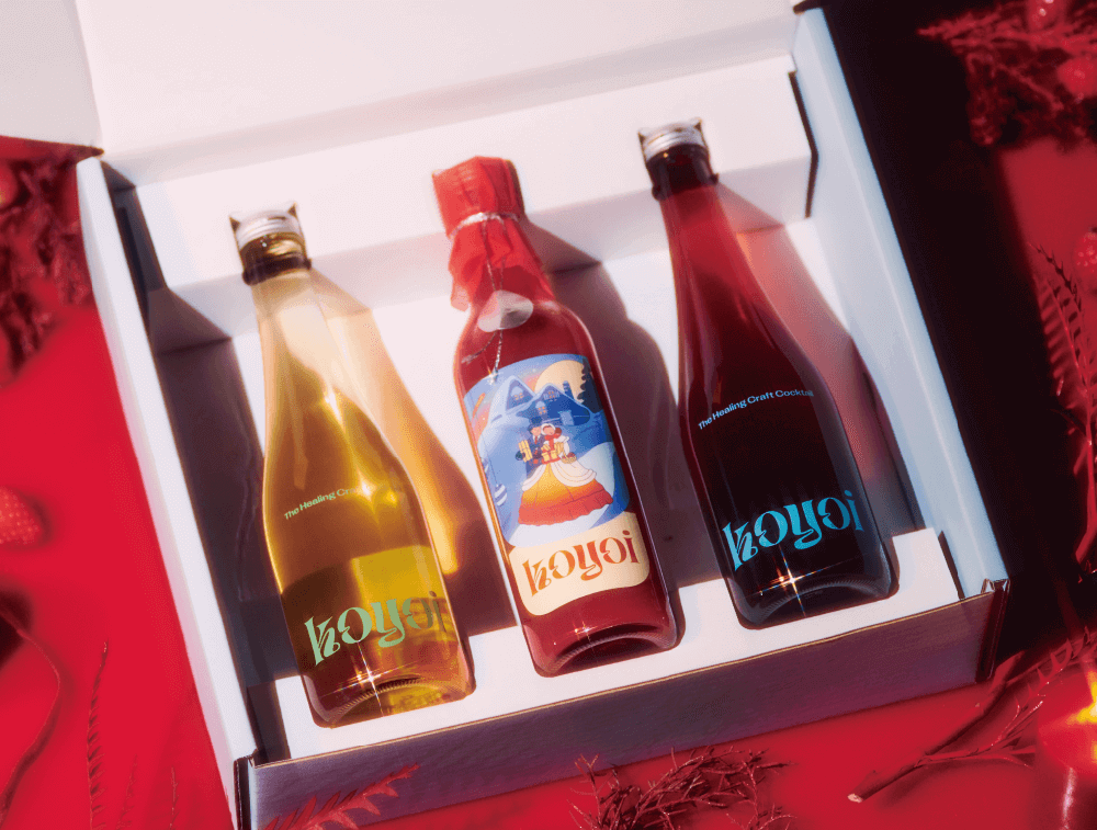 いちごのカクテル、ラズベリーとバニラのカクテル、エルダーフラワー薫るモヒートカクテルの3本セット。クリスマスパーティーにぴったり、華やかなkoyoiの飲み比べをお楽しみください。