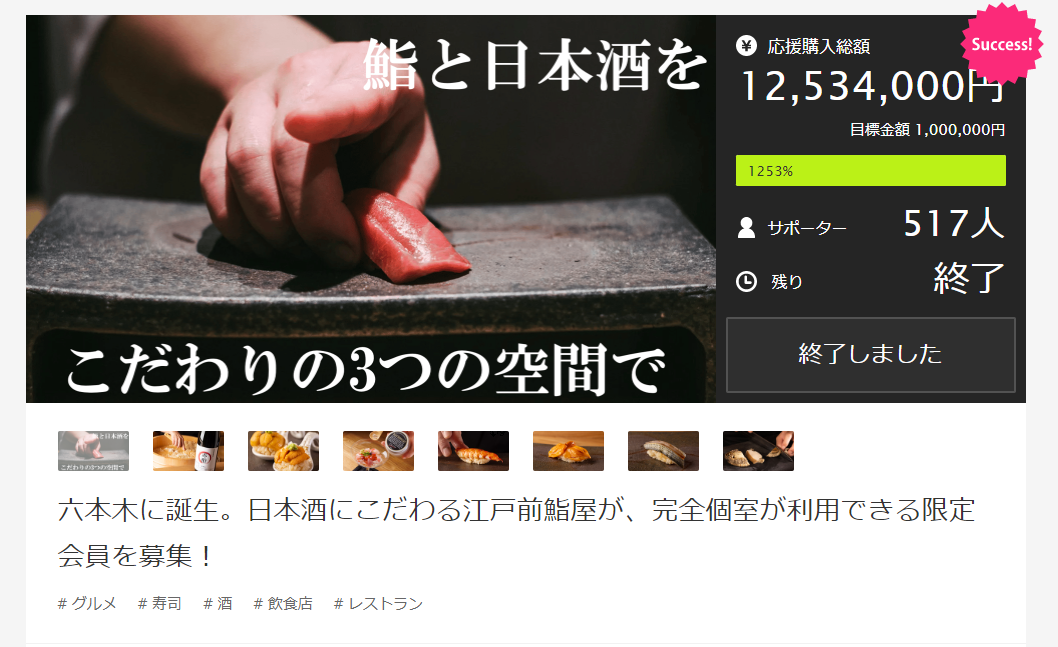 事前にコースお食事券、会員募集を実施したクラウドファンディング(Makuake)では、このモットーに共感いただけた皆様より、517件、総額12,534,000円の申込みと大反響を頂戴いたしました。