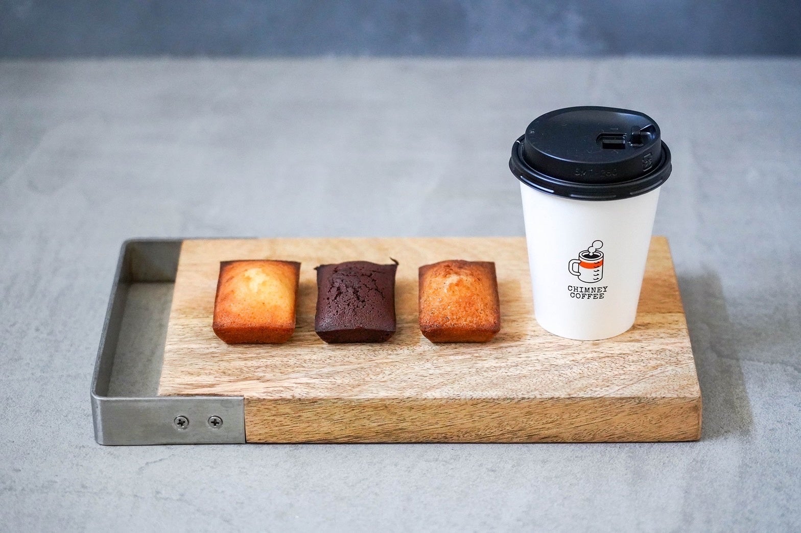 チムニーコーヒー 600円(税込)、フィナンシェ(プレーン・ショコラ・ヘーゼルナッツ)各380円(税込)