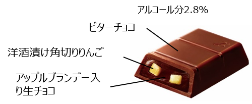 - 洋酒漬けの角切りりんごとアップルブランデー香る生チョコレートをとじ込めた1本タイプの大人の洋酒チョコレートです。