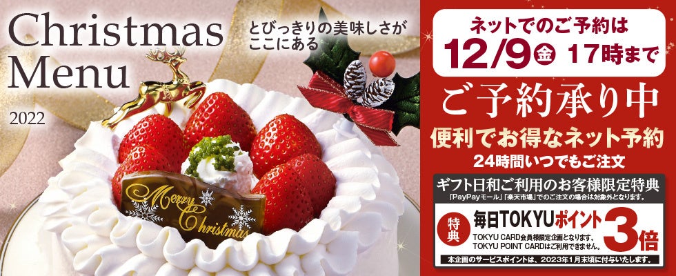 12月10日までクリスマスケーキの予約受付中です。(ネットでは12月9日まで)