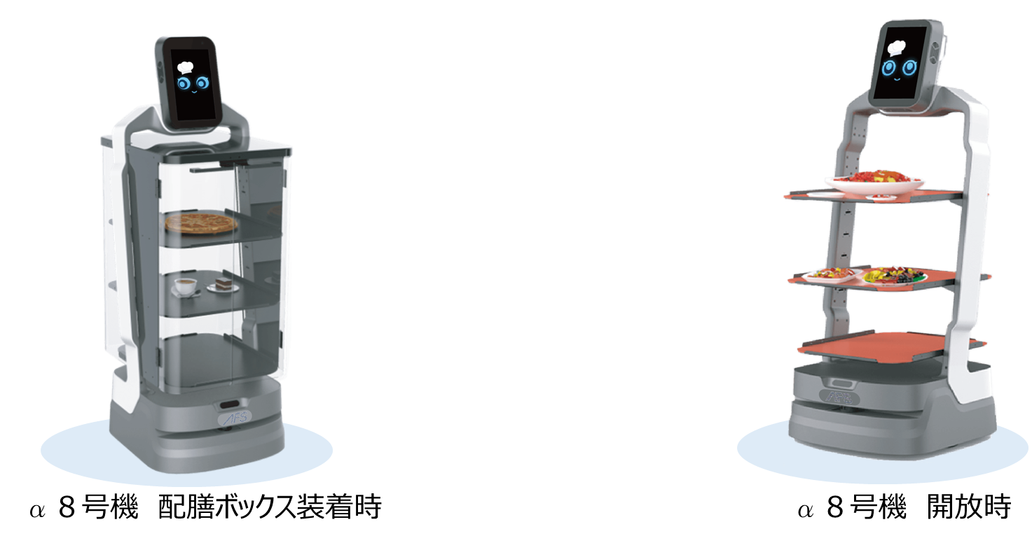 能です。また、8台の同時運用が可能(理論上は30台以上稼働可能)です。配膳ボックスは、脱着式で衛生面にこだわり、開放型・配膳ボックス型の両方での運用が可能となったことも大きな特徴の1つです。