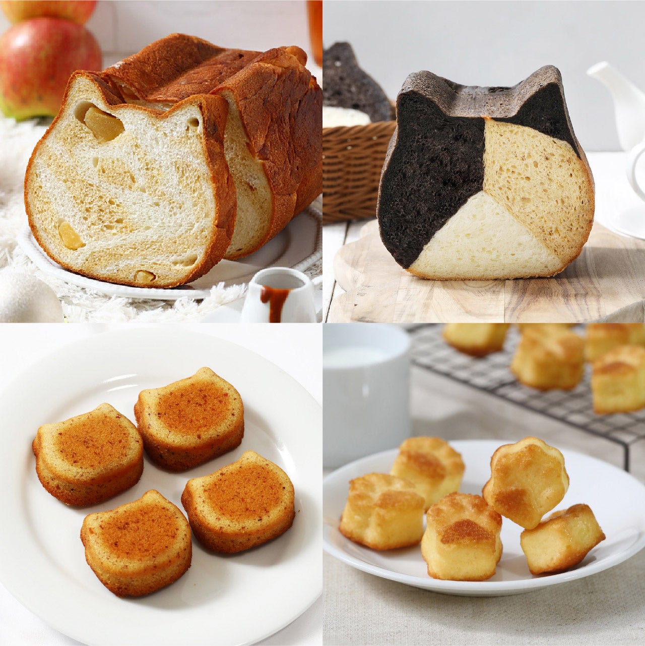 ・内容:ねこねこ食パン キャラメルアップル1個、ねこねこ食パン 三毛猫1個、にくきゅうマドレーヌ1袋、ふぃにゃんシェ1箱(4個入り)、オリジナル熨斗1枚