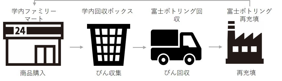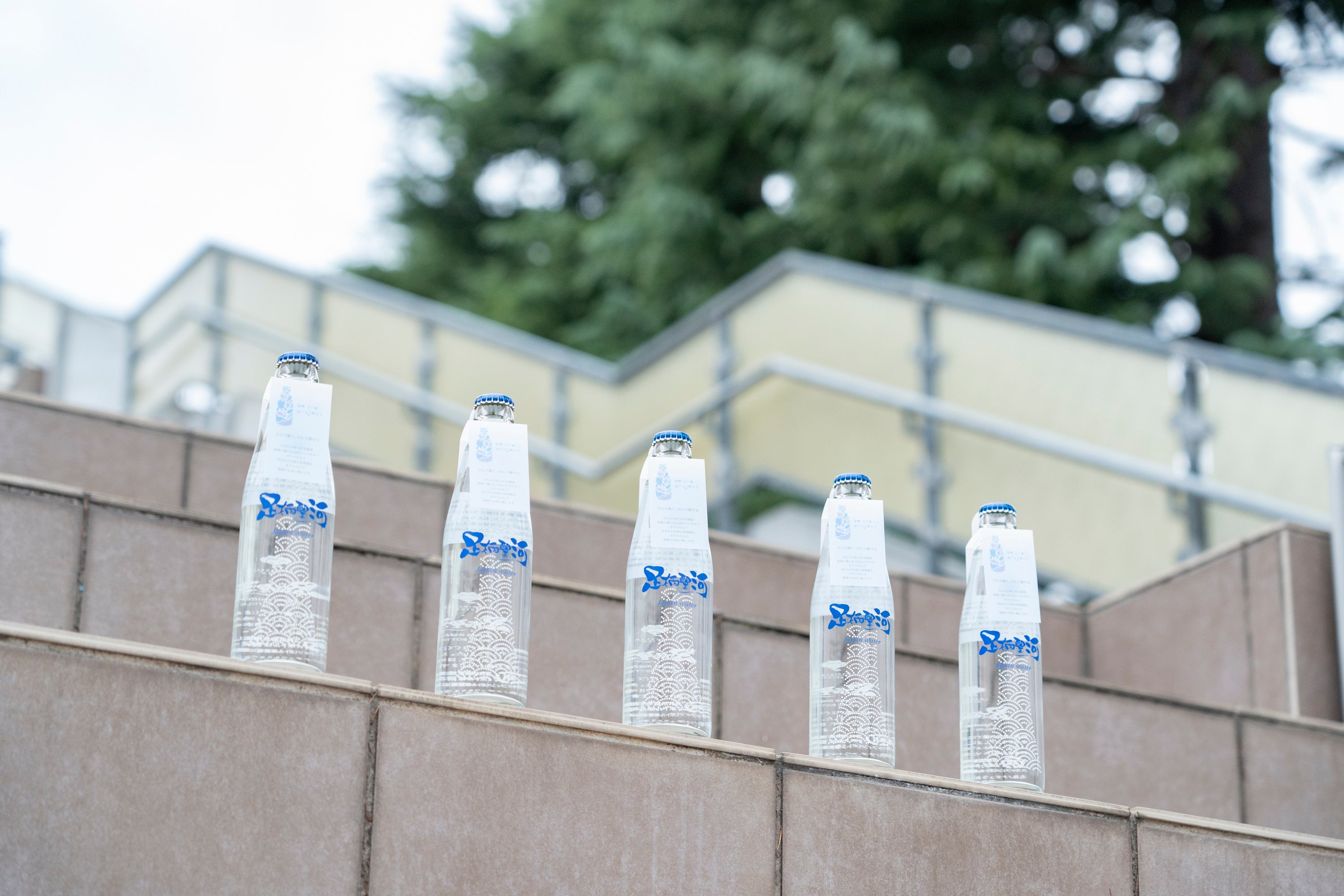 本プロジェクトは洗って繰り返し利用できる、リターナブルびんに入った商品を学内(板橋キャンパス)で販売し、校内におけるCO₂削減を計測し、可視化を試みる実証事業です。今回のテーマ商品には、富士ボトリング株式会社が自社の初ブランドとして発売した「足柄聖河」(リターナブルびん入りミネラルウォーター)を採用しています。