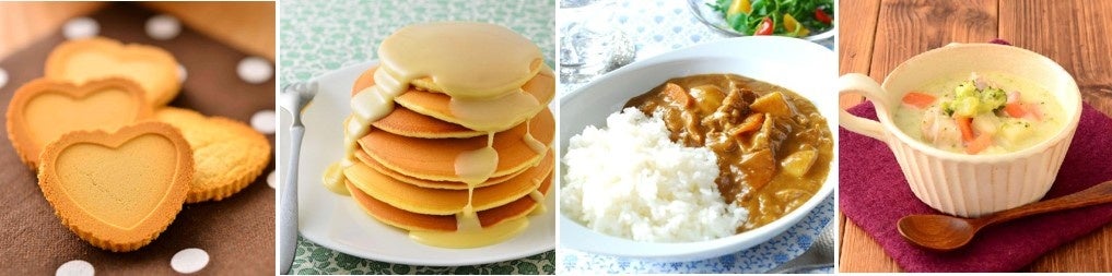「クリープ」はコーヒー以外にも様々な用途に応用ができます。クリープをオーブンで焼いただけのクッキーを始め、パンケーキなどお菓子の生地に練り込んだり、カレーやシチューなどの風味付けやコク出しなどにも使用されています。