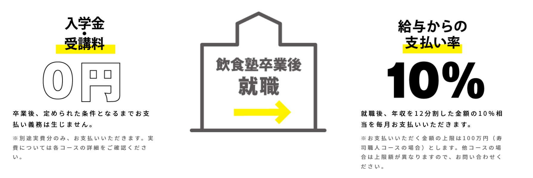 しかし、現在の日本経済は歴史的な円安、原料やエネルギー価格の上昇、ほぼ30年間据え置きとなっている給与など、金銭面においてリスキリングのために新たな一歩を踏み出すのが難しい状況でもあります。飲食業界、引いては日本経済の活性化のために多くの飲食人を輩出したいと考える「飲食塾」では、金銭的リスクを抑えてリスキリングの機会を増やせるよう、入学金と受講料を卒業後、就職してから支払うISAを導入することといたしました。