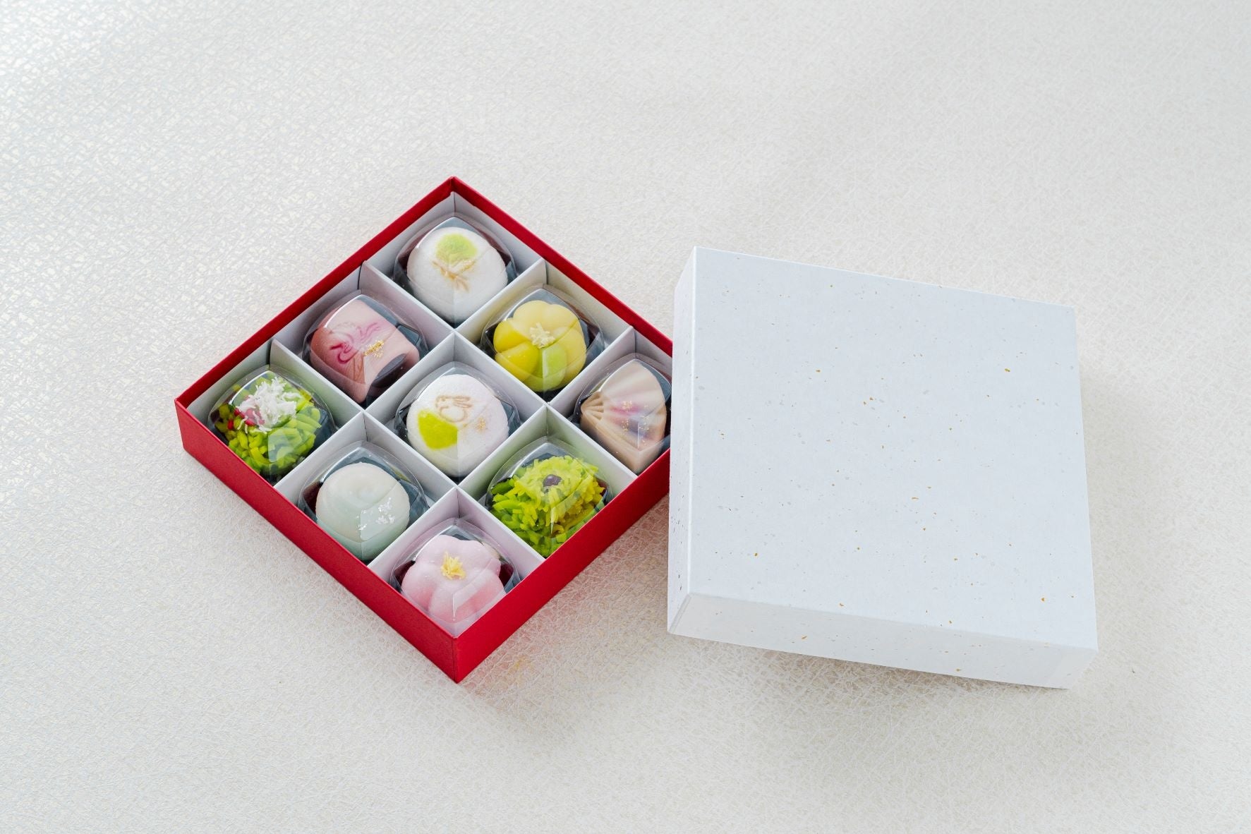 新春の情景を表現した、この期間だけの上生菓子です。新春の‟おめでたい”を感じる彩り華やかで花の細部までこだわった美しい見た目はSNS映えも期待できます。