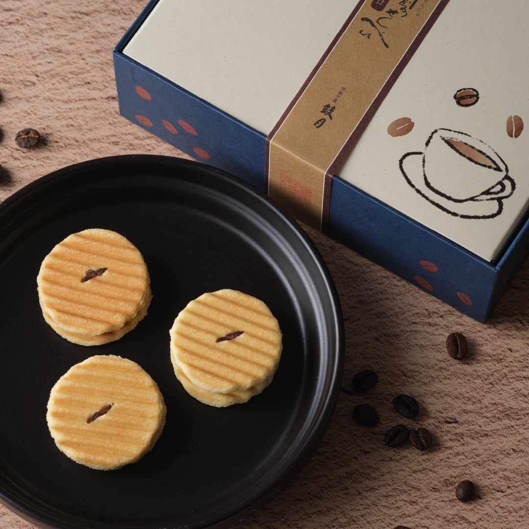 (上品な酸味と苦みが特徴の「キリマンジャロコーヒー」を使用した、大人な味わいの姫千寿せんべい限定フレーバーです。生地のバニラとバターの香りとコーヒーの香ばしくコク深い香りが口の中でふわりと広がります。)