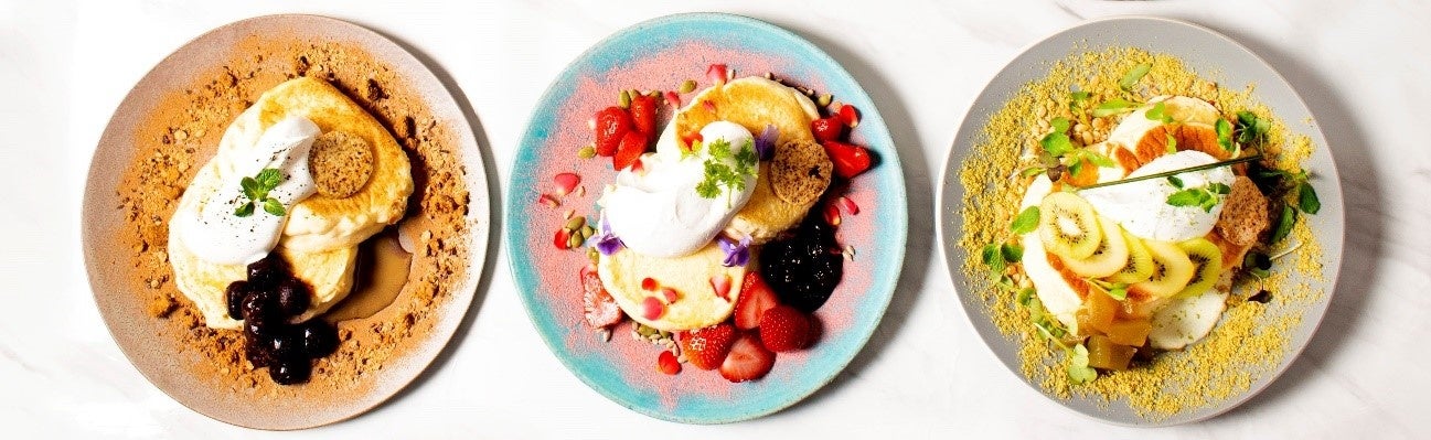 店舗コンセプトであるヘルスコンシャスを軸に、すべてのパンケーキにエディブルフラワーやナッツ、カカオニブなどのスーパーフードを使用しています。素材のナチュラルな甘さや味わいを生かし、過度な甘みは入れずに素材の味を重ねることで甘さと食感に飽きがこない仕上がりとなっています。