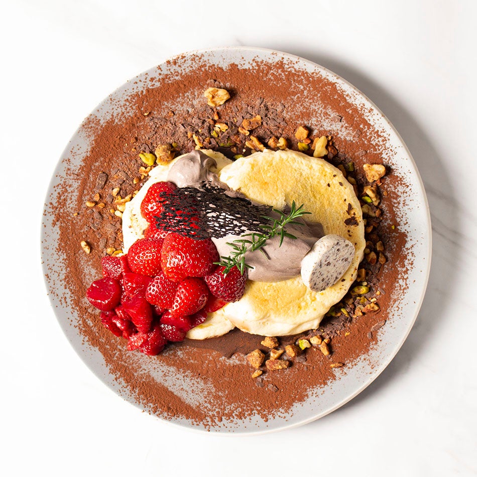 とろける食感を楽しめるパンケーキは一般的なリコッタパンケーキのチーズの約1.5倍の量を使用。オーダー毎にたてるメレンゲと合わせており、口当たりは軽く香り高い仕上がりです。