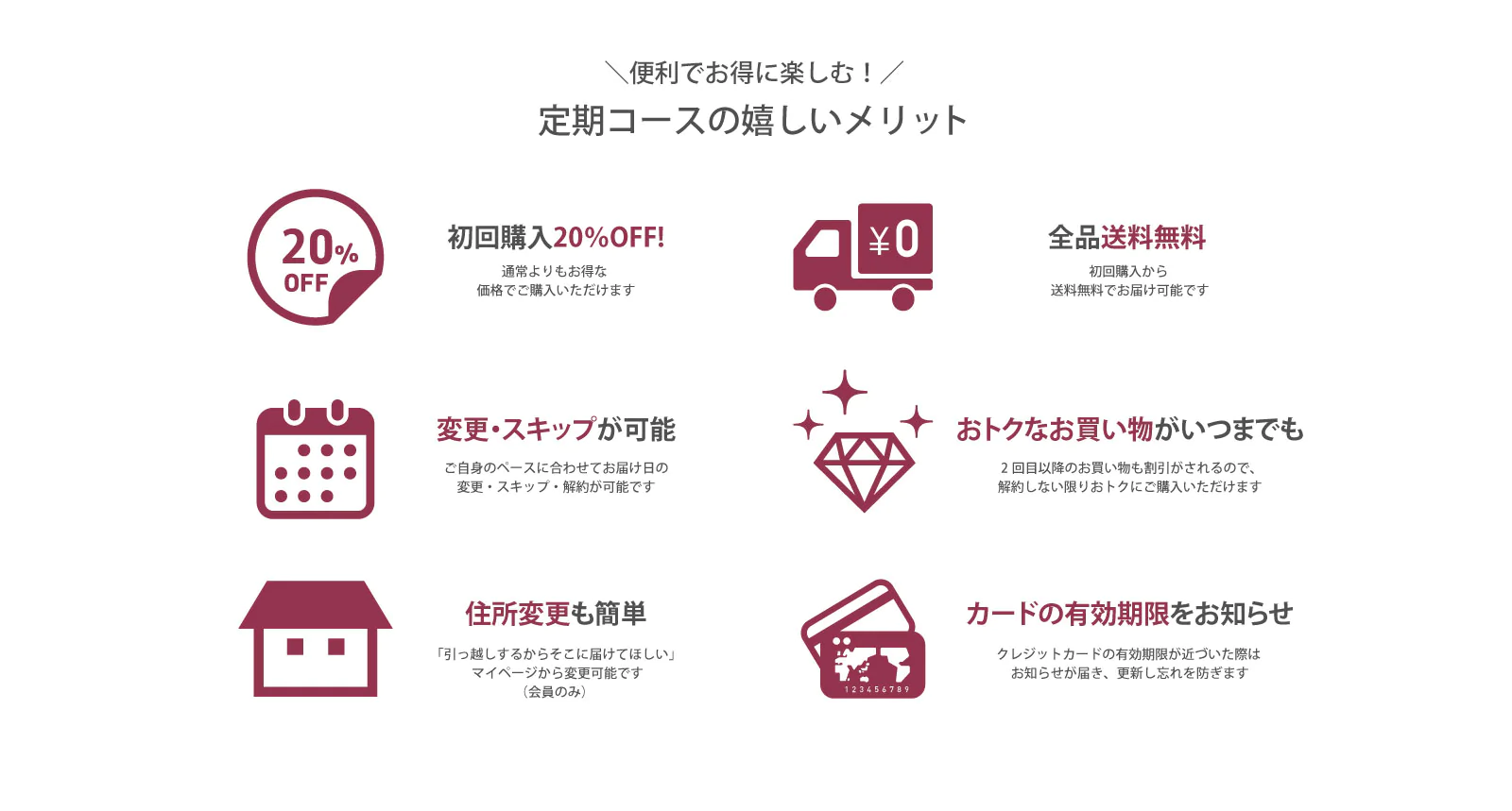 - お届けスケジュールの変更・スキップがいつでも可能!