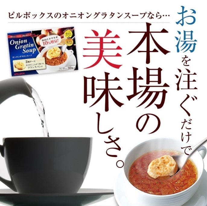 この度、ピルボックスジャパン株式会社(代表取締役社長:栖原徹 以下PILLBOX)は、11月16日(水)より、「忙しい年末年始にピッタリの時短グルメ『オニオングラタンスープ』が当たる!Instagram&Twitterキャンペーン」を実施致します。