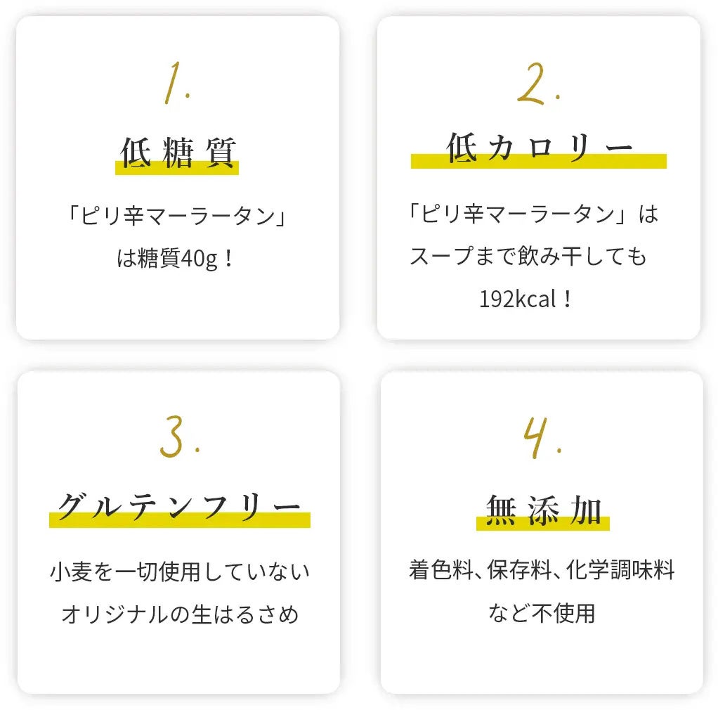そのうえ、ピリ辛マーラータンは飲み干しても1杯192kcalで、低糖質、低脂質、無添加、グルテンフリーです。