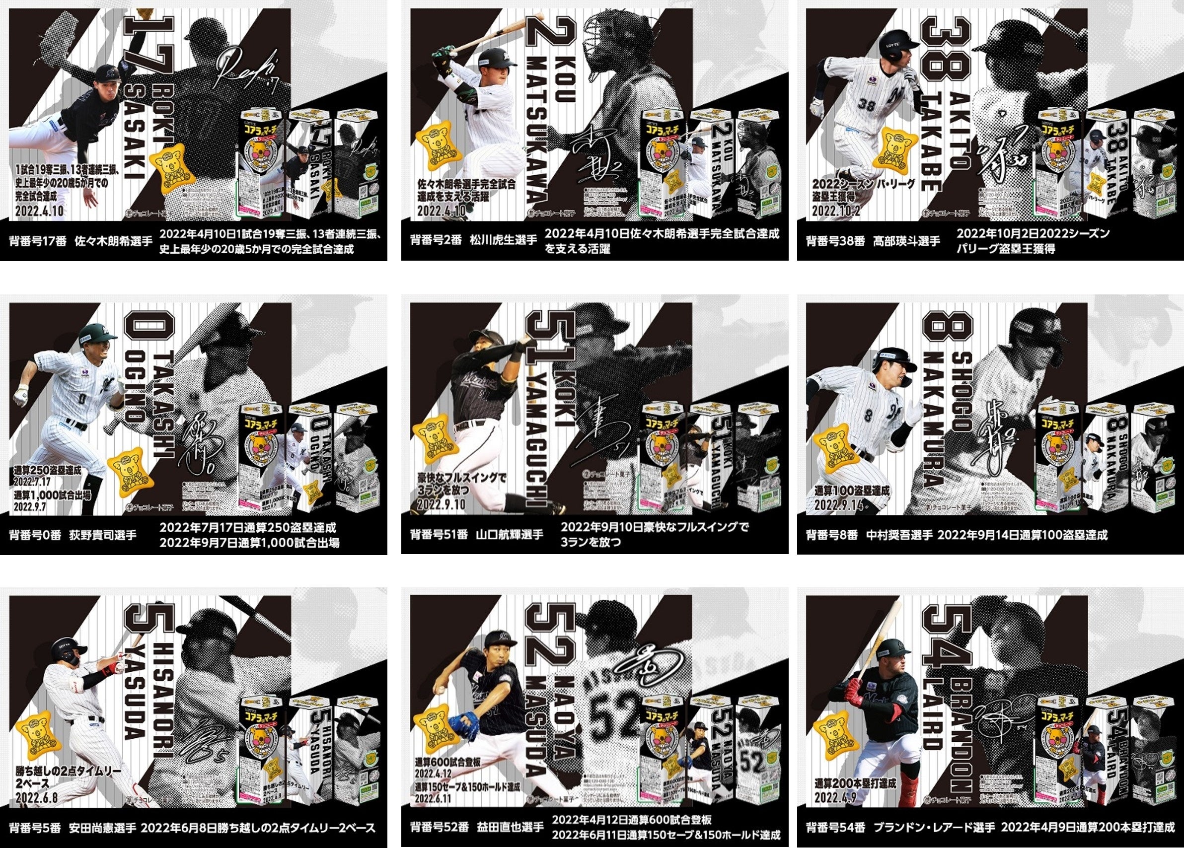 - マリーンズ9選手パッケージは選手のサイン入り。(サインはパッケージに印刷しています)