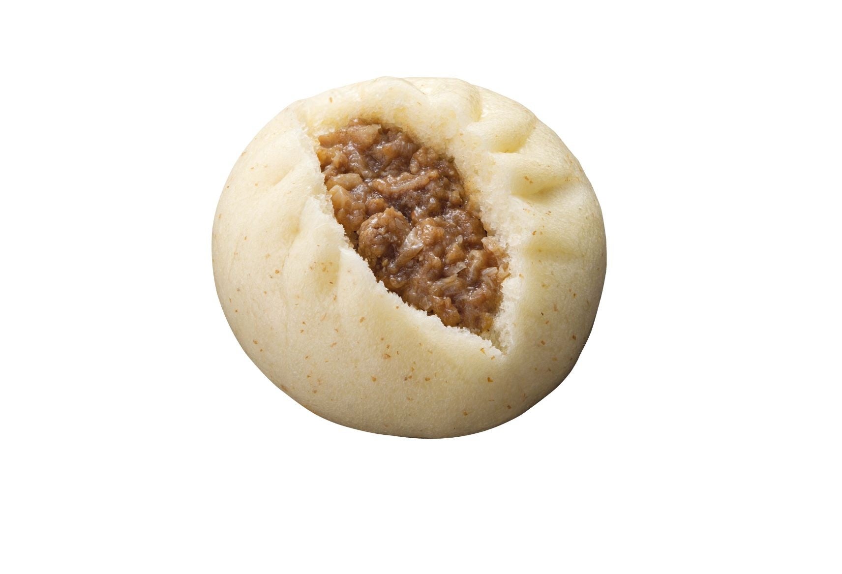 「三田製麺所 つけ麺風 肉まん」は、じっくり煮込んだ豚骨と魚介のこってりとした濃厚スープが特長の、三田製麺所の創業当時から人気の「つけ麺」をイメージした中華まんです。「かんすい」を一部使用し、全粒粉を練り込むことでつけ麺をイメージした生地と、お肉に絡む濃厚魚介スープを合わせた中具を一口食べると、まるで「つけ麺」を食べているかのような新感覚の味わいを楽しめます。