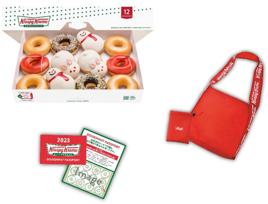 11月22日(火)からは、クリスピー・クリーム・ドーナツの福袋『ダズンセット』の事前予約販売を開始します。『ダズンセット』は、『HAPPY JUMP! 干支 ダズン(12個)』とオリジナルの「マーケットバッグ」、そしてお好きなドーナツ12個と交換ができる「ドーナツパスポ―ト2023」を詰め合わせたお得なセットです。