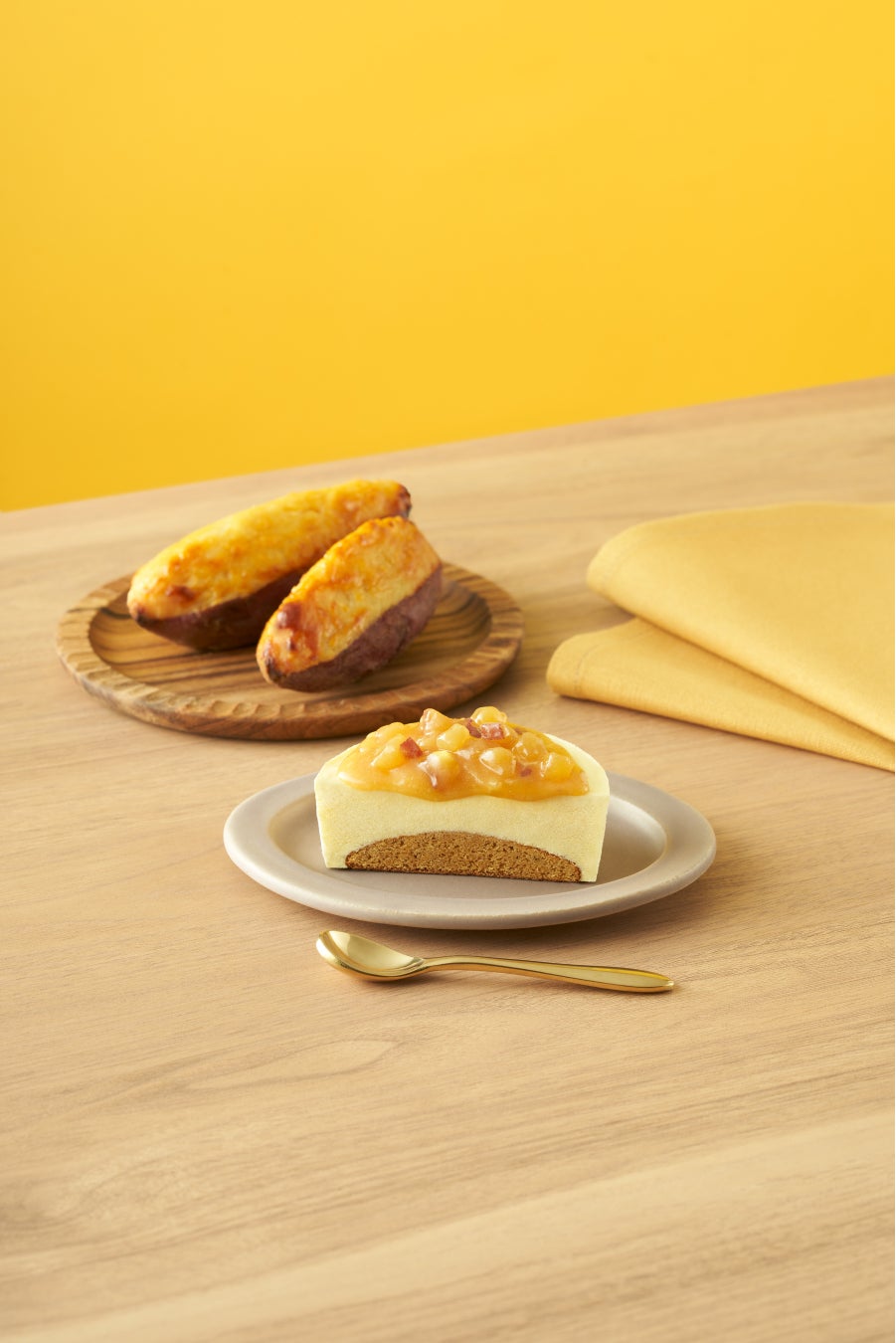 紅はるかパウダーやカラメルシロップを配合し、焼いたおいもの香ばしさとスイーツ感が味わえるケーキです。白あんを加えることで、しっとりと口溶けよく焼き上げました。