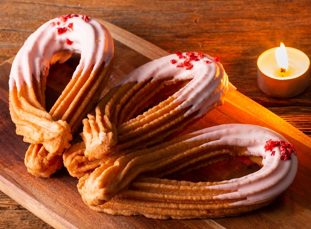 ストロベリーを使った、ホリデーシーズン限定デコレーションのチュロスリボンです。可愛らしい見た目に仕上げました。