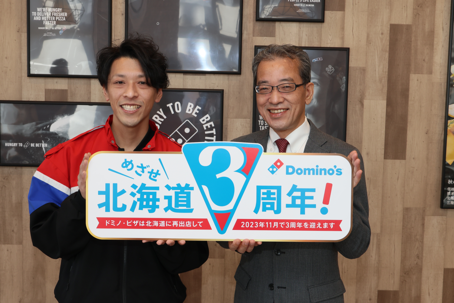 そこで、ドミノ・ピザが、いよいよ北海道再出店から3年目に入るにあたり、道民の皆さまに益々ご愛顧いただけるよう、3周年にむけて、一層の飛躍をめざし、本日11月17日より1年をかけて、「北海道3周年キャンペーン」を行い、北海道限定の施策を多数実施していくことといたしました。