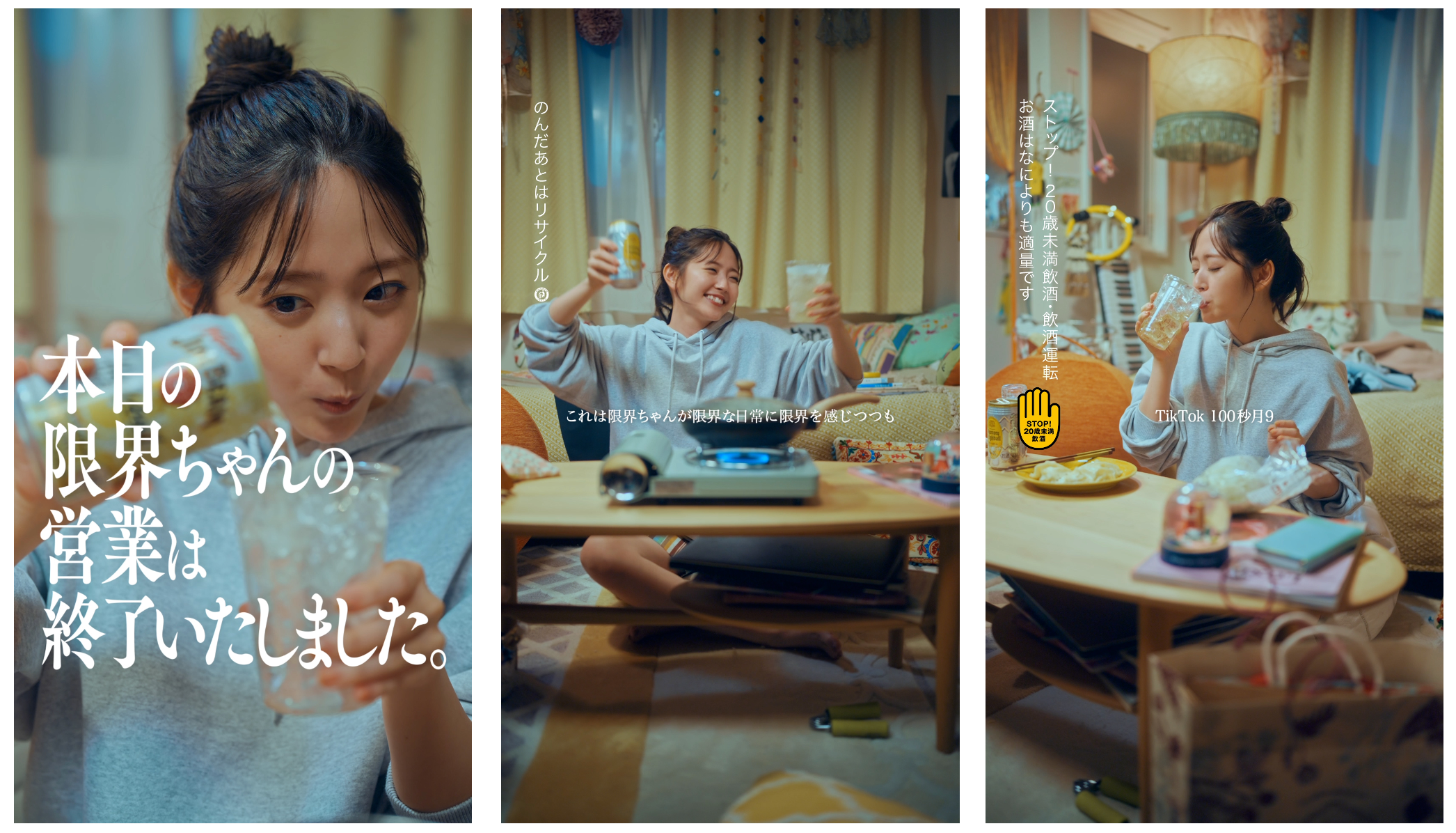 「限界ちゃんの#ていねいな暮らし」は仕事終わりに飲むハイボール「しごおわハイ」を提案し、仕事終わりの「限界ちゃん」が自分らしく「しごおわハイ」とそれに合うおつまみを楽しむ様子を描くTikTokドラマです。仕事終わりにふと食べたくなる辛いラーメンや、推しとの時間を楽しむ様子など、働く人のさまざまなあるあるが登場し共感できる約100秒のドラマです。主演を務めるのは、女優の鈴木愛理さん。鈴木愛理さんが忙しい日々に限界を感じる「限界ちゃん」となり、仕事終わりに「しごおわハイ」と一人の時間を自分らしく楽しむ様子を表情豊かに演じています。