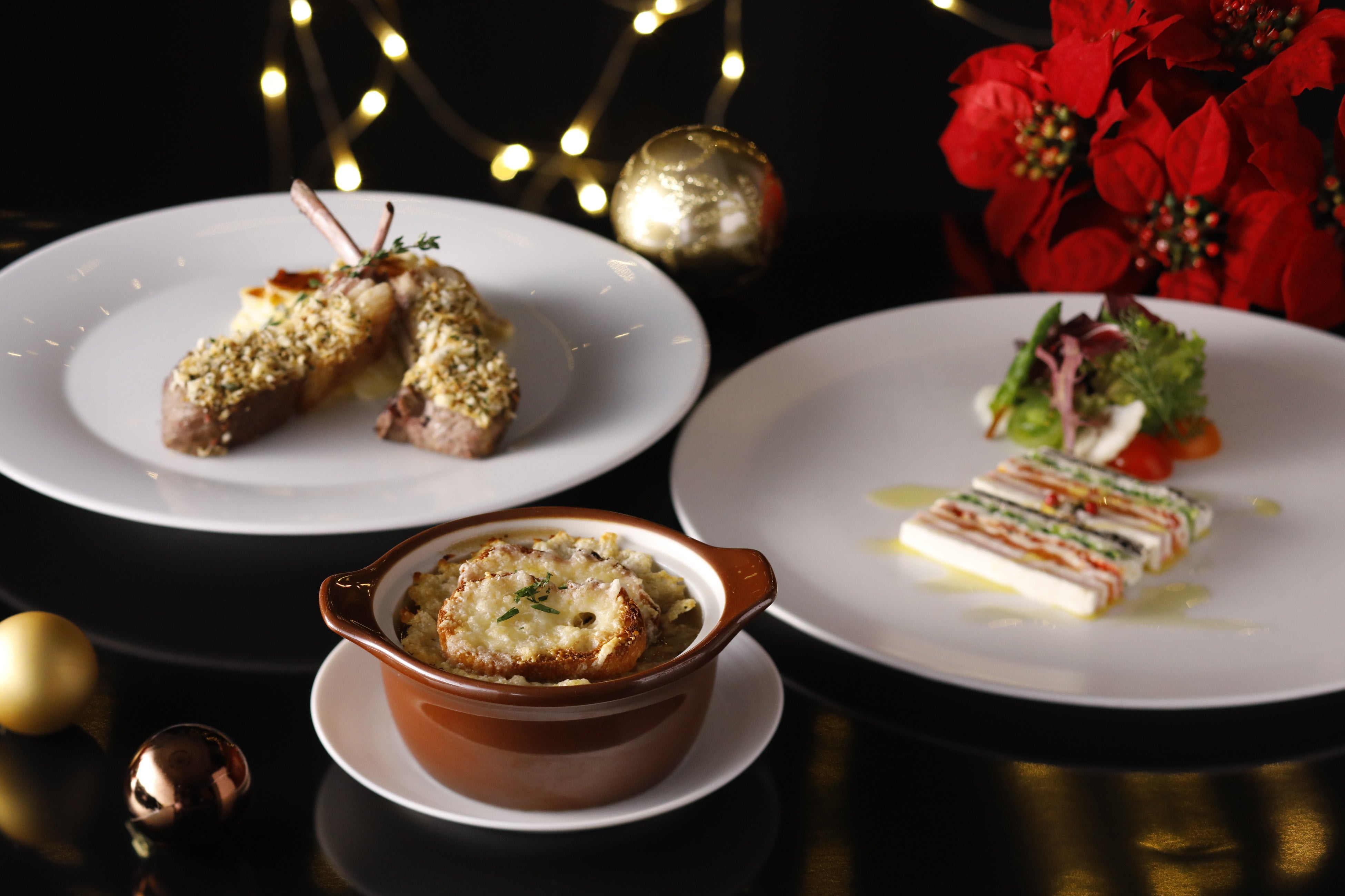 実演レシピ:クリームチーズを使った前菜、オニオングラタンスープ、ラムの香草焼き