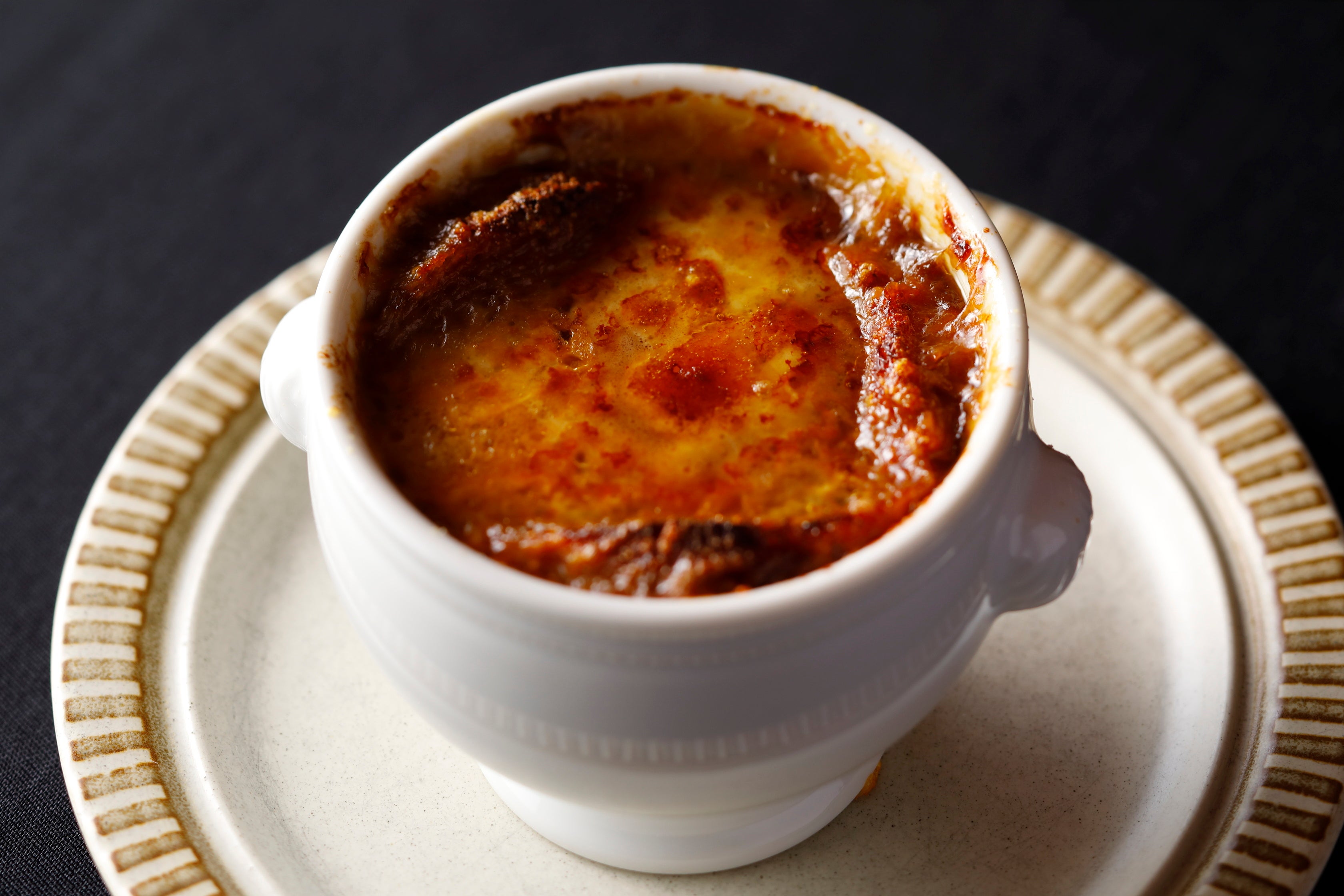 - 老舗ステーキハウスの名脇役!身体の内側から温まる究極のオニオングラタンスープ