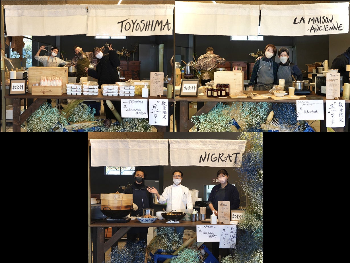 そしてこの度、新たな試みとして、山梨を代表する有名レストラン3店舗(TOYOSHIMA・NIGRAT・LA MAISON ANCIENNE)が出店し、世界的な日本酒コンクールでプラチナ賞を受賞したプレミアム日本酒「旦」と新酒まつり限定のコラボレーションを実施しました。