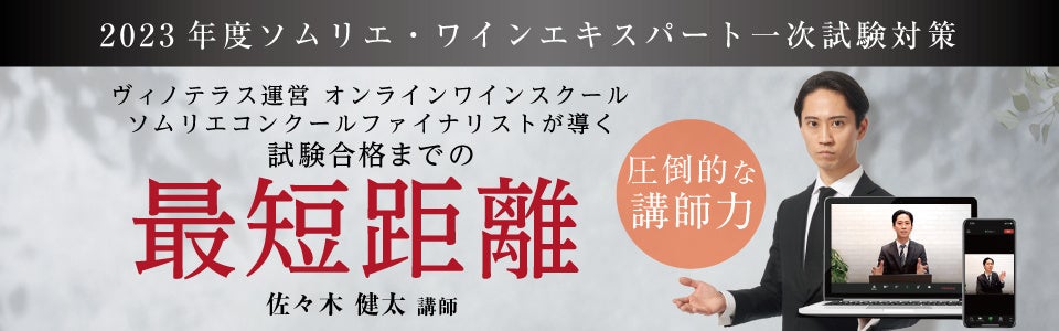 オンラインに特化したワインスクール ヴィノテラスでは、2023年3月1日(水)より、2023年度ソムリエ・ワインエキスパート試験対策講座を開講。