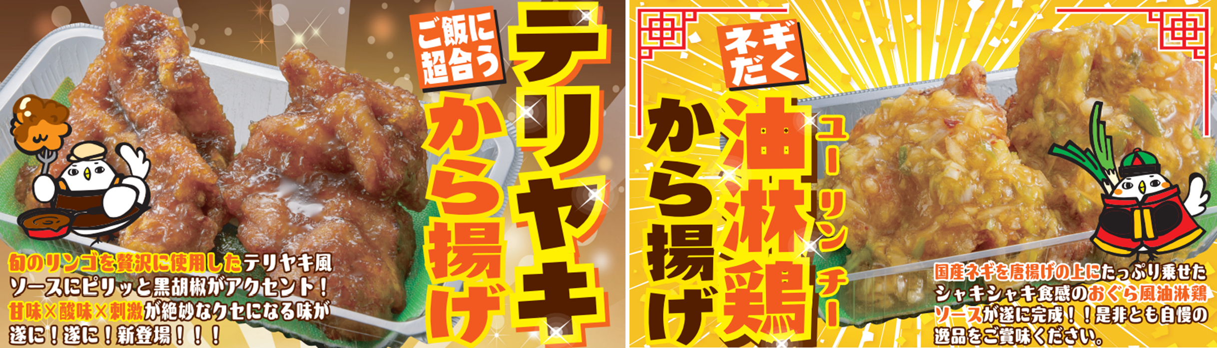 ■商品 :「テリヤキから揚げ」、「油淋鶏から揚げ」