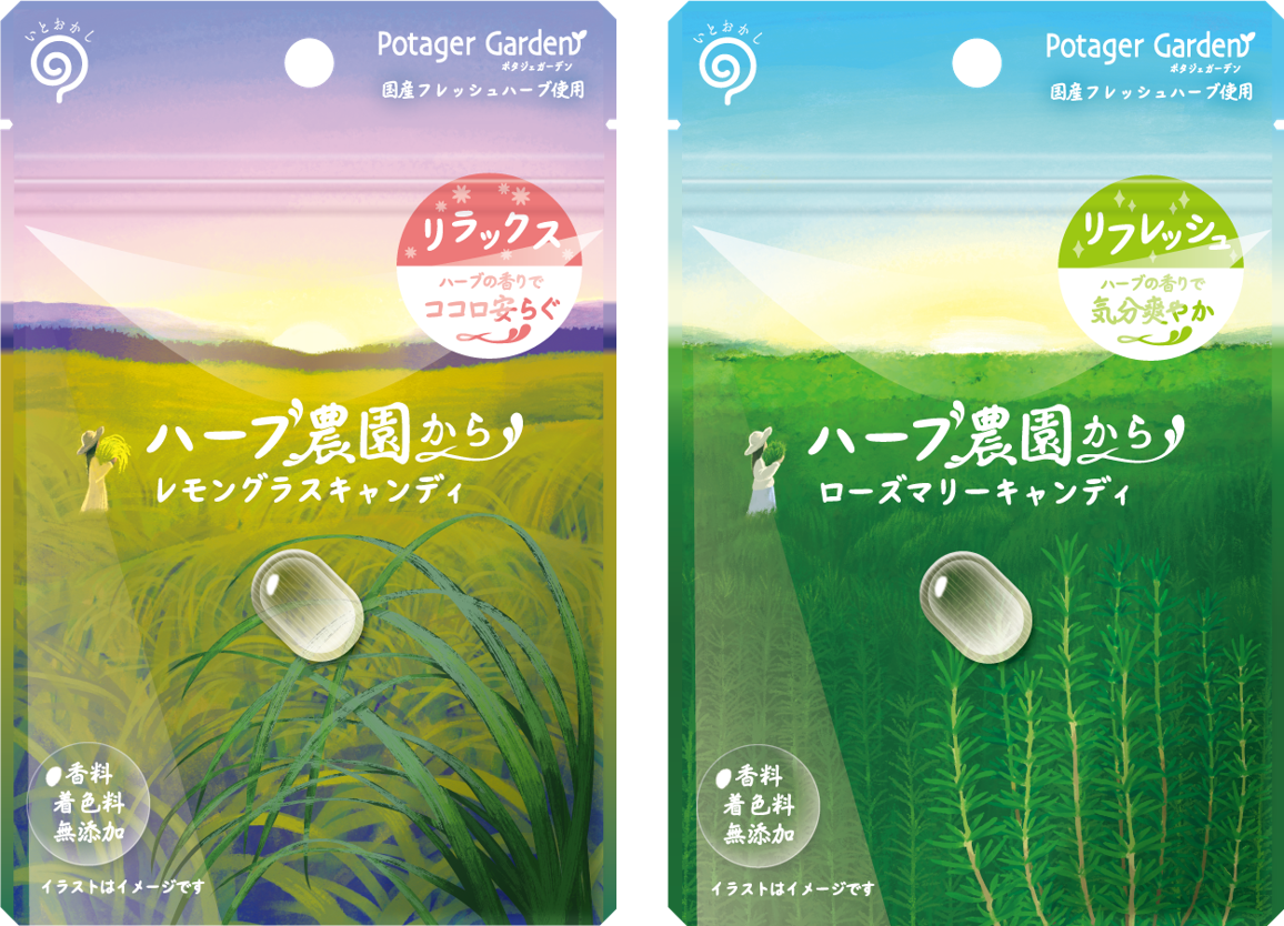 ハーブの生産を強化する企業や、ハーブの配送プランを始める企業などハーブへの注目が集まる中、今冬本格販売のキャンディブランド「ハーブ農園からローズマリーキャンディ/レモングラスキャンディ」は、老舗ハーブ農園の「ポタジェガーデン」とタッグを組み、自社工場に設置した蒸留施設でポタジェガーデンから直送されたハーブを加工することにより、畑からお菓子ができるまで一貫して自分たちの目で見届けることが可能になりました。香料着色料無添加、ポタジェガーデンで作られたハーブを100%使用の“本気の”ハーブスイーツをコンセプトにしています。