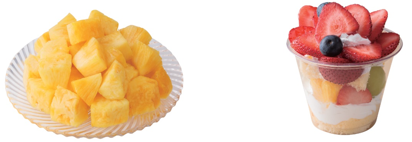栃木県内の地場農家生産の「下野野菜」を販売。フルーツ売場では鮮度感あふれるカットパイン、旬のフルーツを使用したフルーツパフェが新登場。パフェの第1弾は苺パフェとなります。