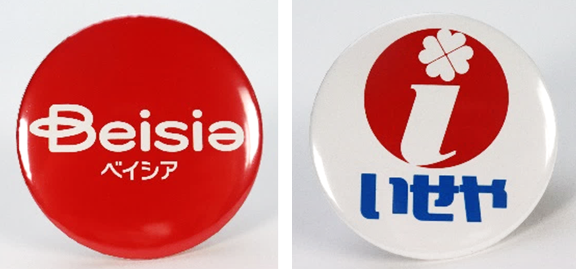 ベイシア、いせやの他、ベイシアグループ各社を含めた全10種の缶バッチがラインナップ