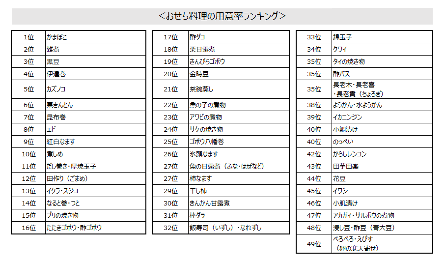 これらの調査からは、各家庭においておせち料理に、その土地の名産品や伝統料理を取り入れている様子がよくわかります。