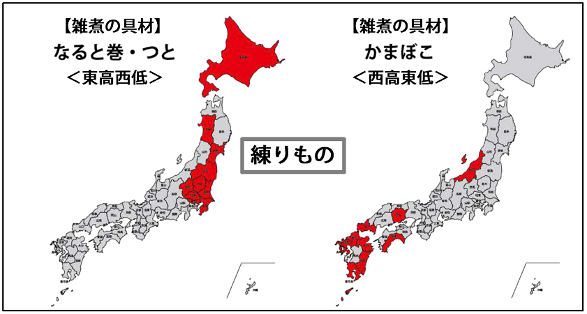 - ほぼ全国的に分布。かまぼこ・雑煮・黒豆の3強は変わらず