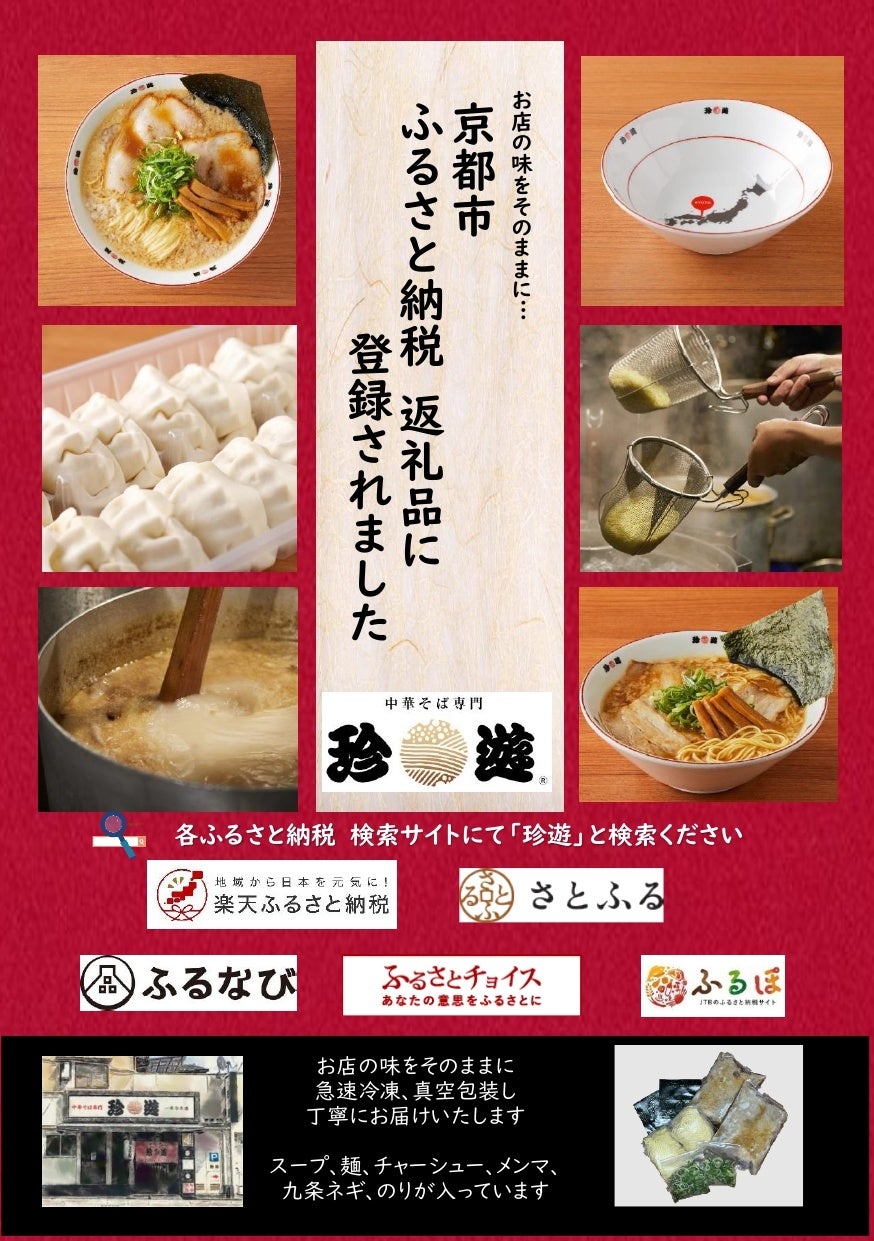 【珍遊冷凍中華そばが京都市ふるさと納税返礼品に登録されました】
