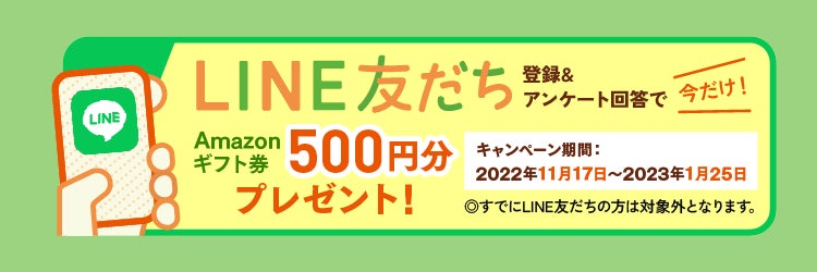 回答完了の翌月中に、LINEのトーク画面にて「Amazonギフト券」の進呈ページをご案内いたします。
