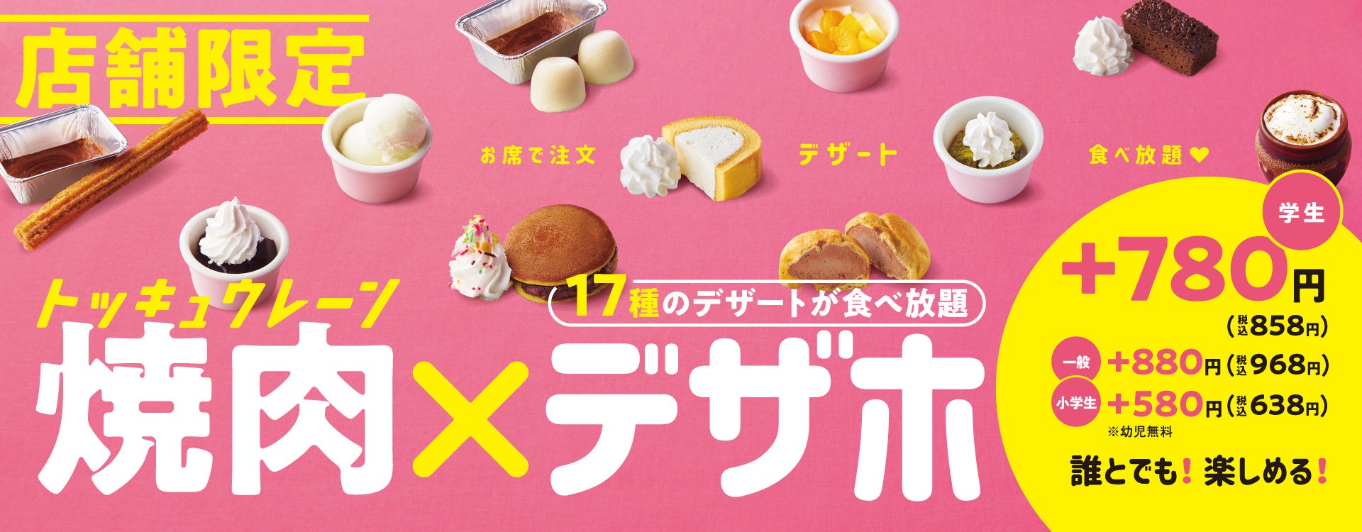 そんな「焼肉の和民」が夏の特別企画として販売しておりました17種のデザートの食べ放題プラン「デザホ」は、「焼肉」と一緒に楽しむことができることで若年層を中心に多くのお客様にお楽しみいただいてきました。そんなお客様からのご好評にお応えすべく11月25日(金)より店舗限定で、お食事利用(税込500円以上)をいただいたすべてのお客様がご注文可能で、お席でご注文いただいたデザートを特急レーンでご提供するオーダーバイキング形式はそのまま、17種以上のデザートをおひとり様880円(税込968円)、学生は780円(税込858円)、小学生は580円(税込638円)として販売継続をいたします。