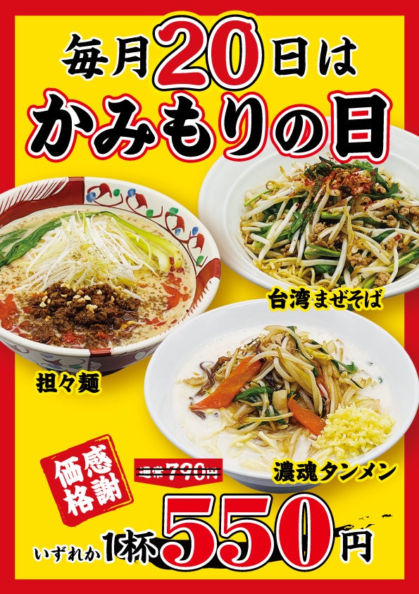 濃魂タンメン1杯550円(通常価格790円)にてご提供致します。