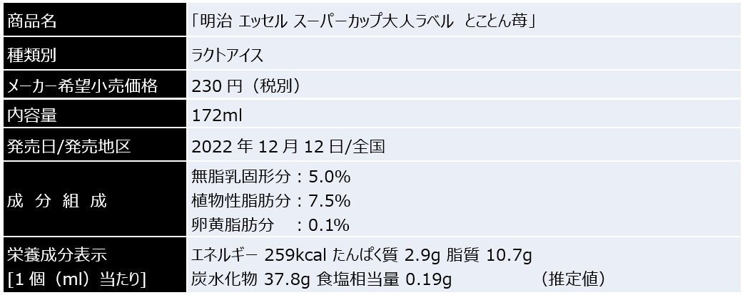 株式会社 明治(代表取締役社長:松田 克也)は、2022年11月28日(月)より「明治 エッセル スーパーカップ 大人ラベル とことんショコラ」、2022年12月12日(月)より「明治 エッセル スーパーカップ 大人ラベル とことん苺」を期間限定で全国にて新発売します。