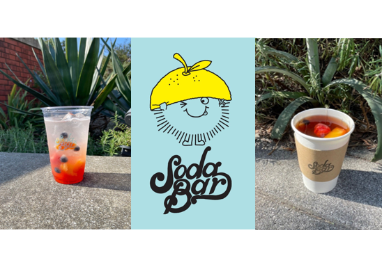 今回のイベントでSODA BARは、フタバフルーツおすすめの柿と早生みかんを使ったスペシャルドリンク “フルーツパンチソーダ” と “フルーツパンチティー”のほか、SODA BAR人気ナンバーワンの減農、無農薬の柑橘を使用した ”季節のフルーツソーダ” と “季節のシロップティー”を販売いたします。