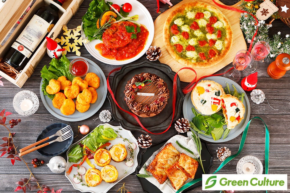 プラントベースのおいしさを追求し続けている「グリーンカルチャー」が提供する「素材と味わいにこだわる冷凍プラントベース・ディナー&スイーツセット」がテーブルを彩ります。今年のクリスマスは、植物のおいしさに囲まれて!