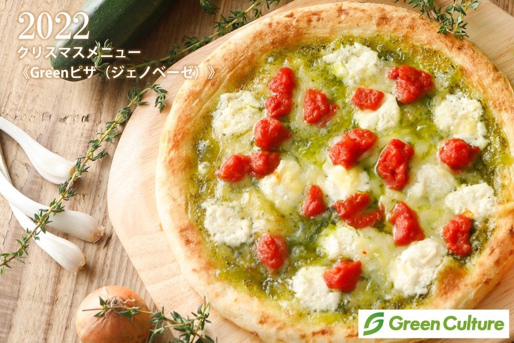 ●Greenピザ(ジェノベーゼ):乳製品不使用。植物性チーズがとろける当店大人気のヴィーガンピザ