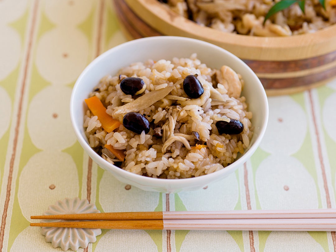 やさしい甘みの作州黒豆をたっぷり使ったほっこりおこわ。 炊飯器を使って美味しく炊き上げます。