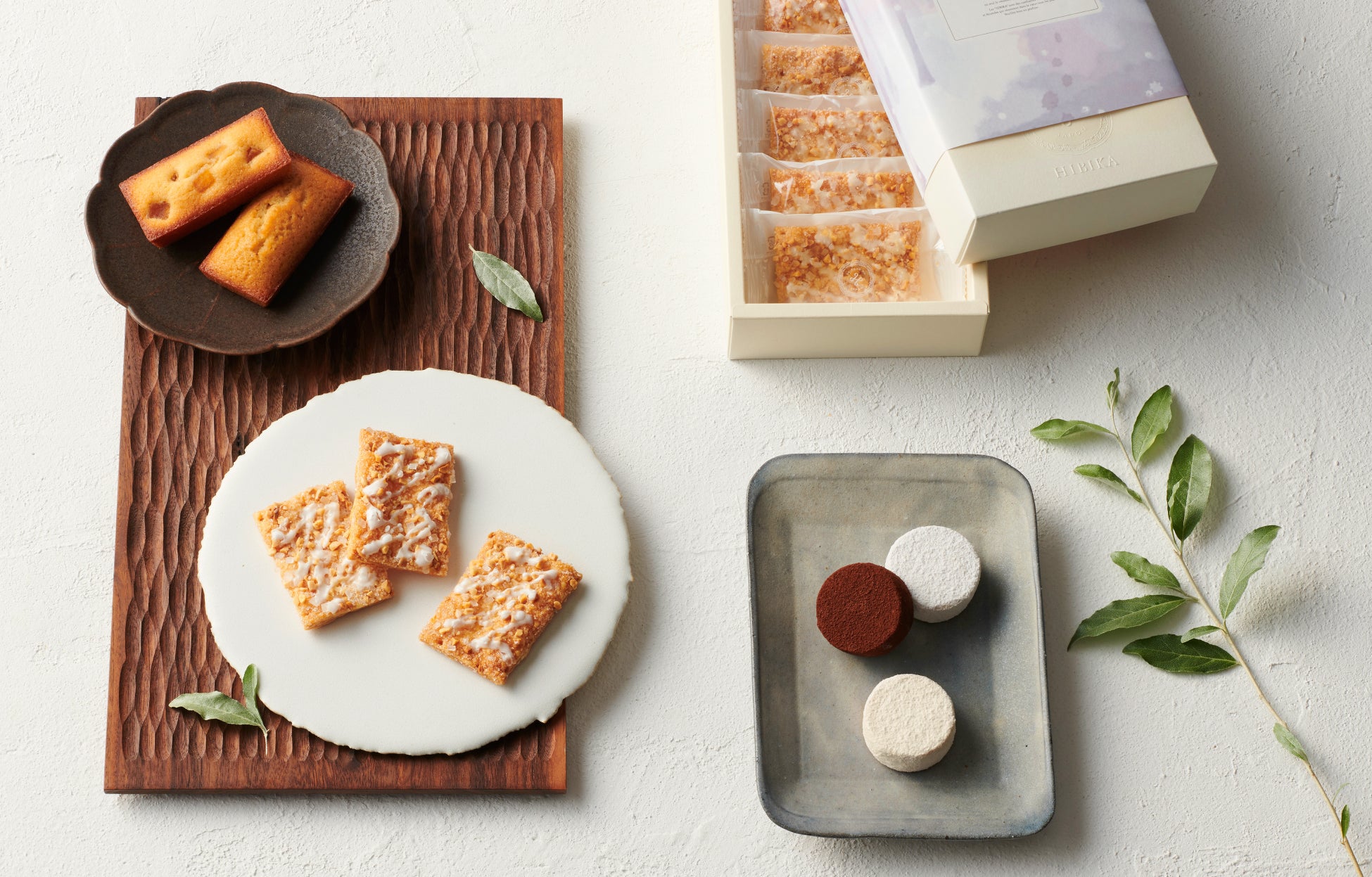 選び抜いた素材で丁寧に、しっとり焼き上げたフィナンシェ。上品な味わいの“ 和三盆 ”と季節の味わいの“ 林檎 ”を詰め合わせました。