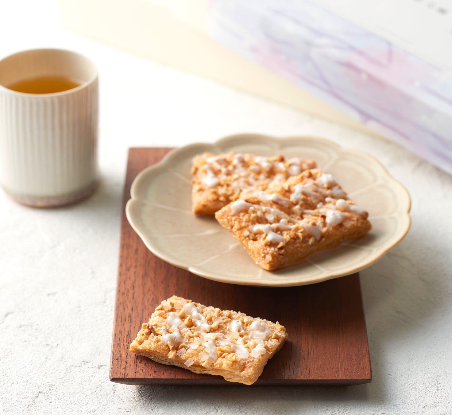 薄い生地の層が繊細に重なり合うバターが香るパイ生地に、白い雪のようなアイシングを絞ってサクサクに焼き上げました。豊かな風味と甘みが心を満たしてくれる、冬だけのおいしさです