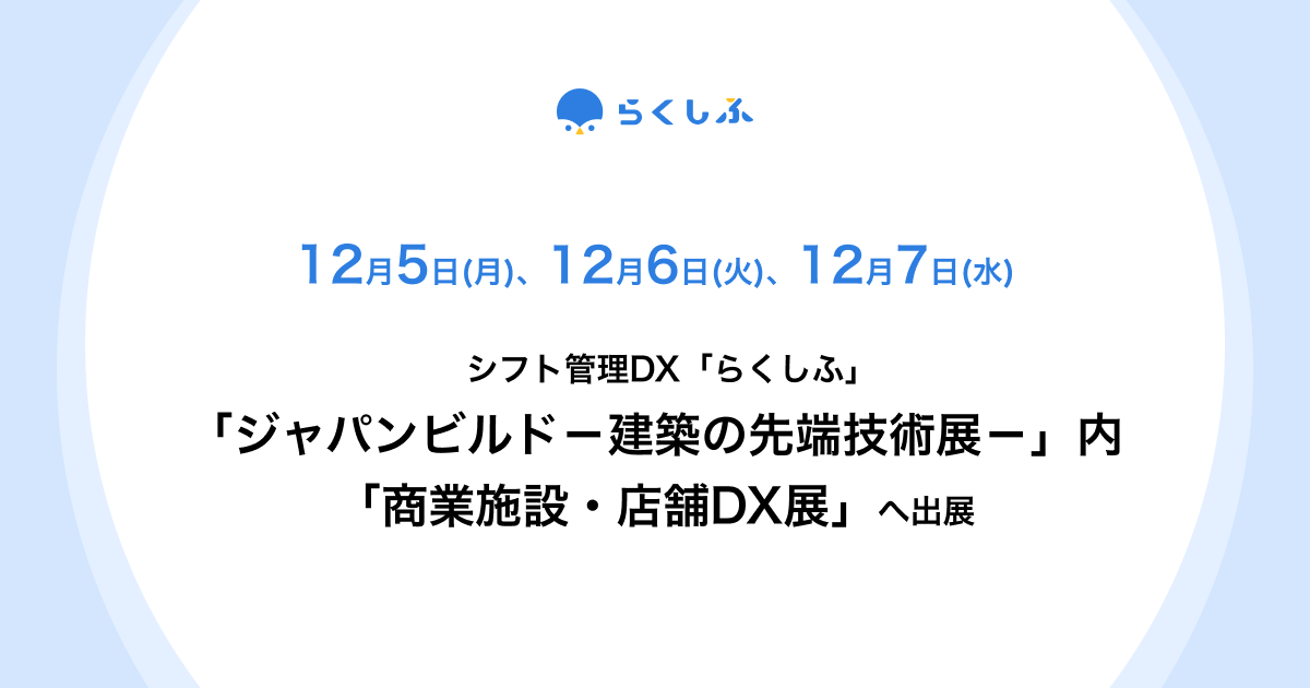 当日のブースでは「らくしふ」管理者向け画面など、シフト管理コストを大幅改善するノウハウの詰まったシステムのデモンストレーション展示を実施。16,000事業所導入の実績から、業務効率化・人件費大幅改善の事例を紹介します。