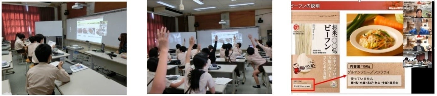 45分の授業ではアレルギーに関するクイズを出したり、いろいろな商品の表示を見てもらうワークをしてもらったり、楽しく学んでもらえるような内容にしました。授業の最後に「家族にアレルギーの人がいないので表示など見た事がなかったが、これからは見てみたいと思いました」、「先生の授業とはまた違うことを知ることができ、勉強になりました」などの感想をいただき、食物アレルギーに興味を持ってもらった様子がうかがえました。