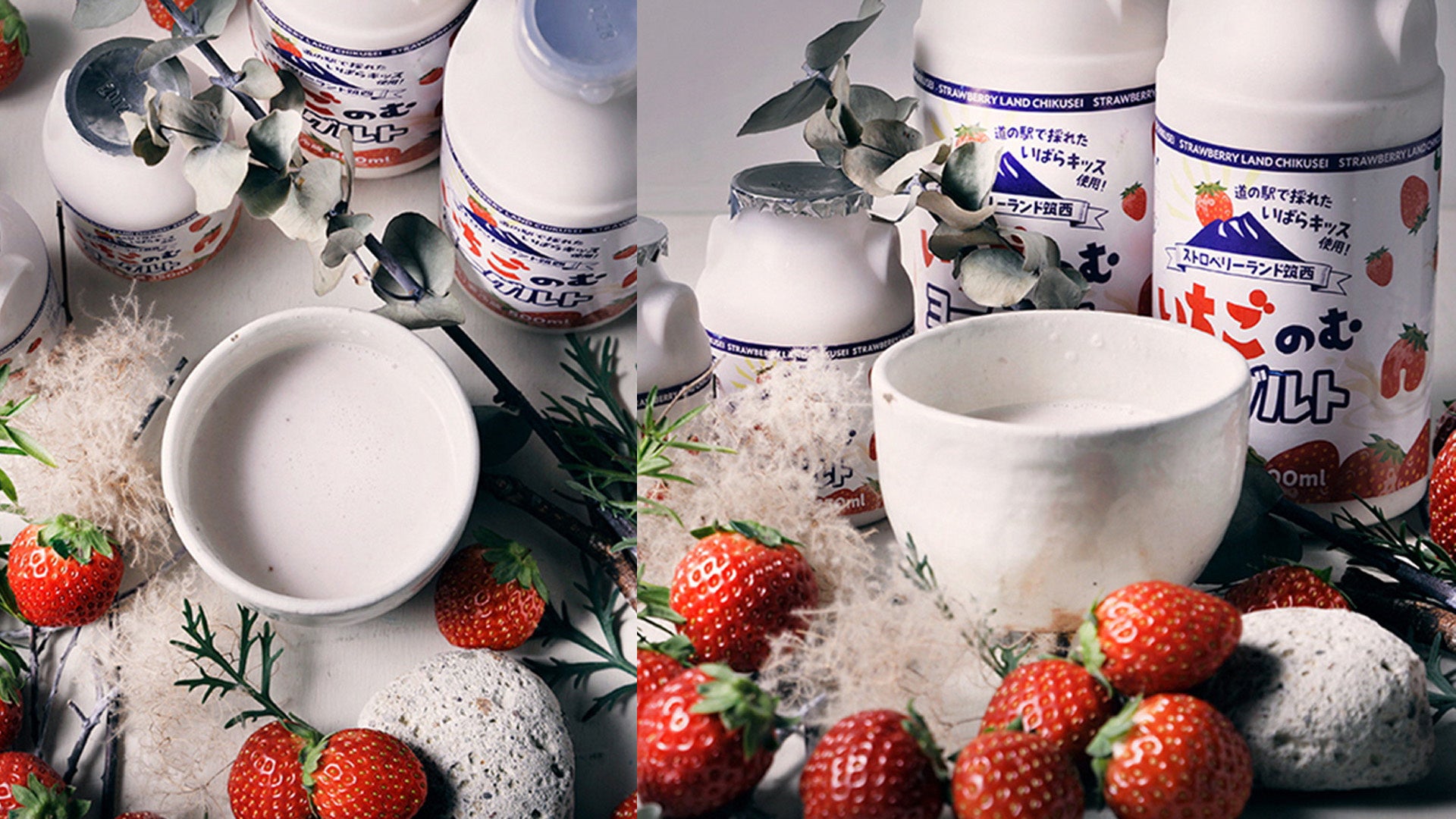 道の駅グランテラス筑西に隣接する、「ストロベリーランド筑西」のブランドいちご「いばらキッス」を使用した、いちご味の飲むヨーグルトです。