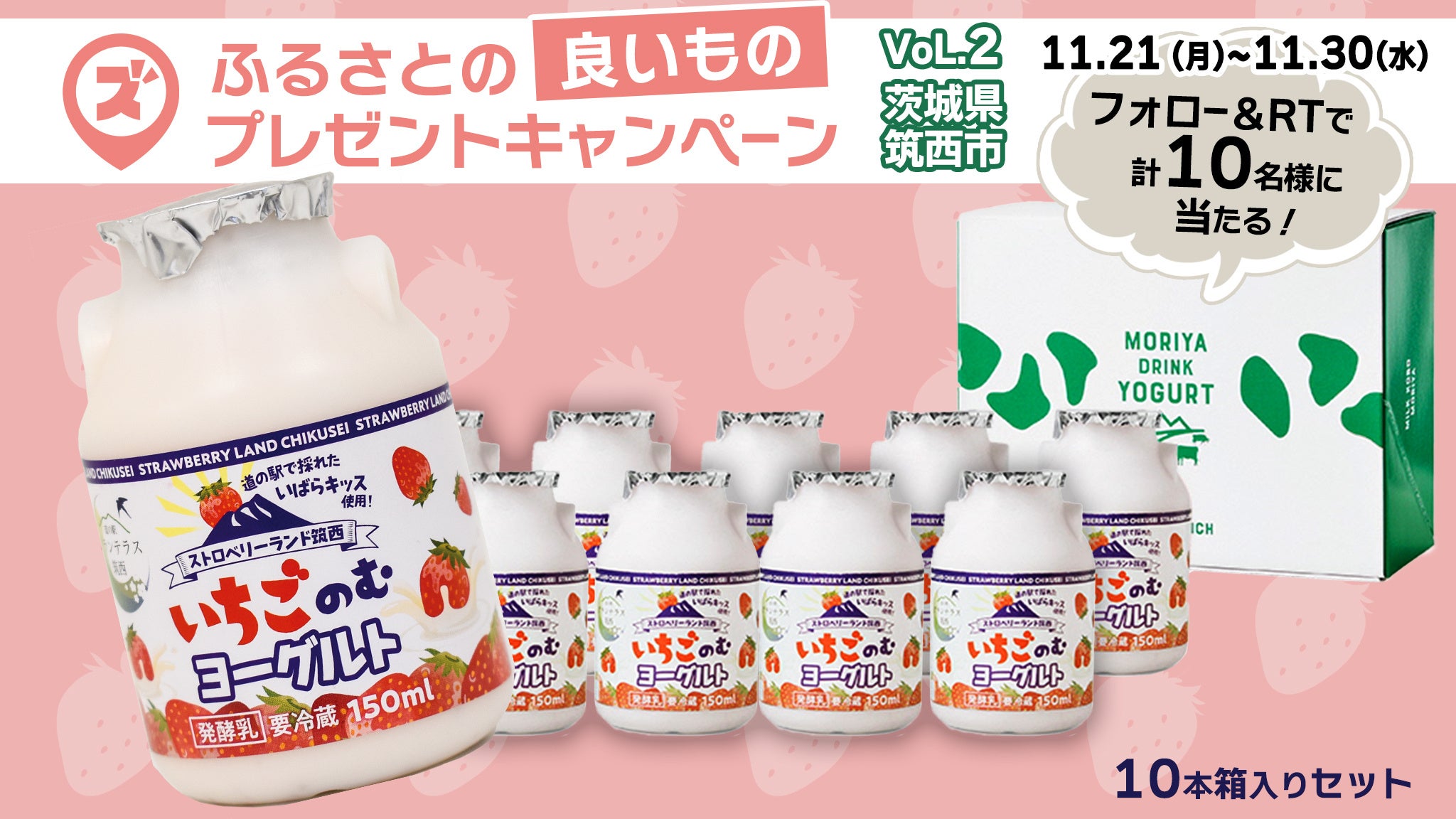 株式会社サンカクキカク(本社:福岡県久留米市、代表取締役:宇佐川桂吾)は、11月21日〜11月30日の期間中、新しいふるさと納税のカタチを実現する『ふるさとズ』の取り組みの1つとして、Twitterプレゼントキャンペーンを開催することをお知らせします。キャンペーンにご参加いただいた方の中から、抽選で10名様にブランドいちご「いばらキッス」を使用した『いちごのむヨーグルト』をプレゼントします。