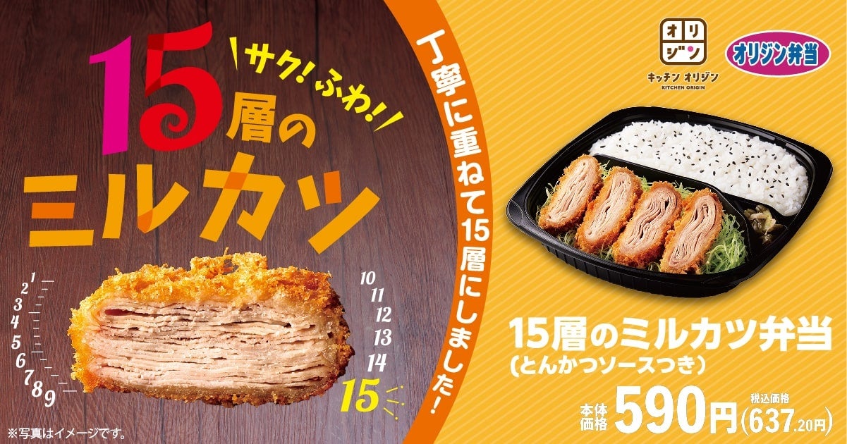 弁当・惣菜専門店「キッチンオリジン」「オリジン弁当」を展開しているイオングループのオリジン東秀株式会社(本社:東京都調布市/代表:沢村 弘也)は、11月22日(火)10時より、「15層のミルカツ弁当」を期間限定で販売いたします。